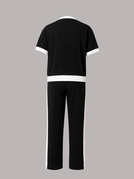 Elegant Two‑Piece Set – Solid V‑Neck Top & Long Trousers