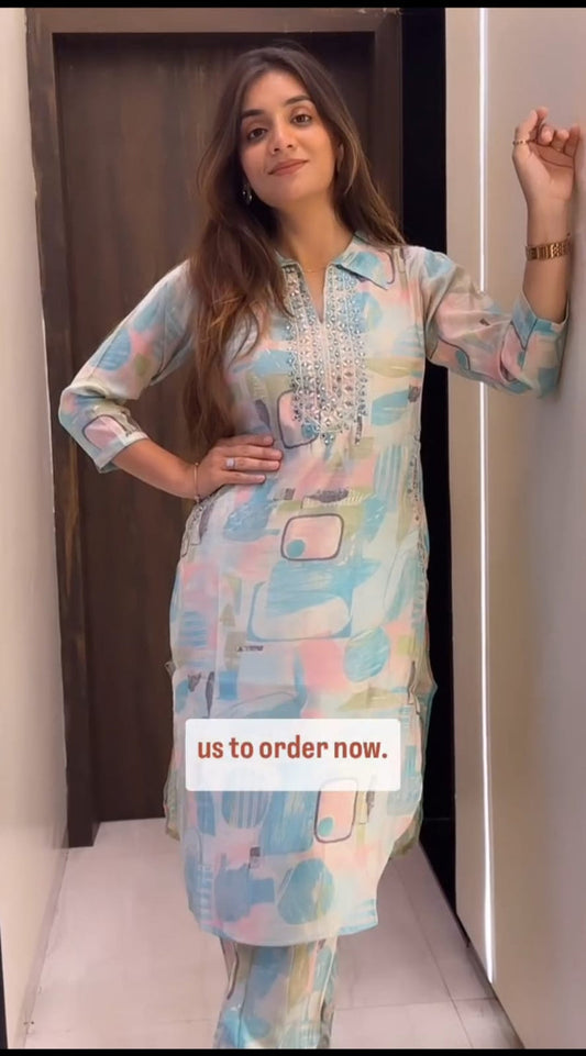 SAVE 56%Navy Blue Shirt & Beige Pant Set