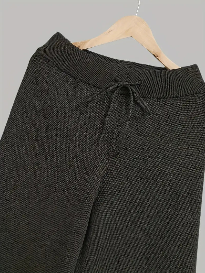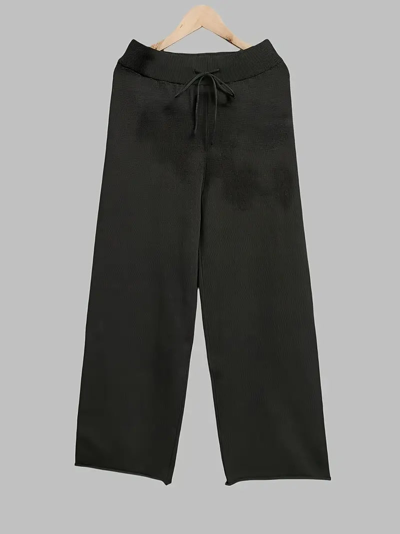 Versatile Design: The set includes a long-sleeve sweater and wide-leg pants, both featuring a drawstring waist for a customizable fit.